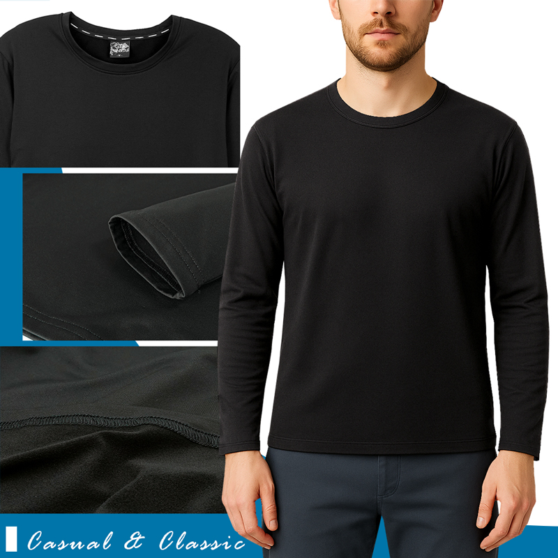 極暖感 高效蓄熱內磨毛 男款圓領 四面彈舒適保暖衣