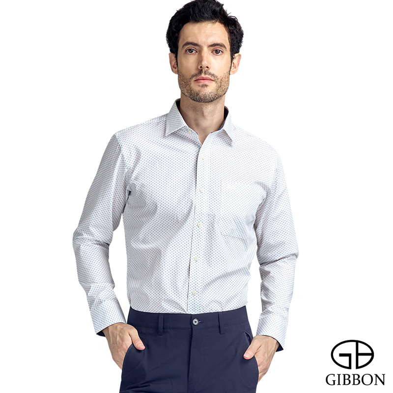 GIBBON吉朋 滿版十字花微型圖騰 質感印花 純棉長袖襯衫 白色