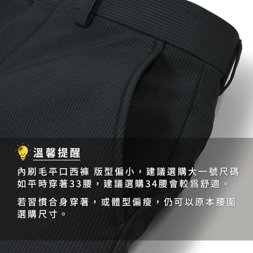 ZENO傑諾-厚暖刷毛條紋平面西裝褲‧深灰